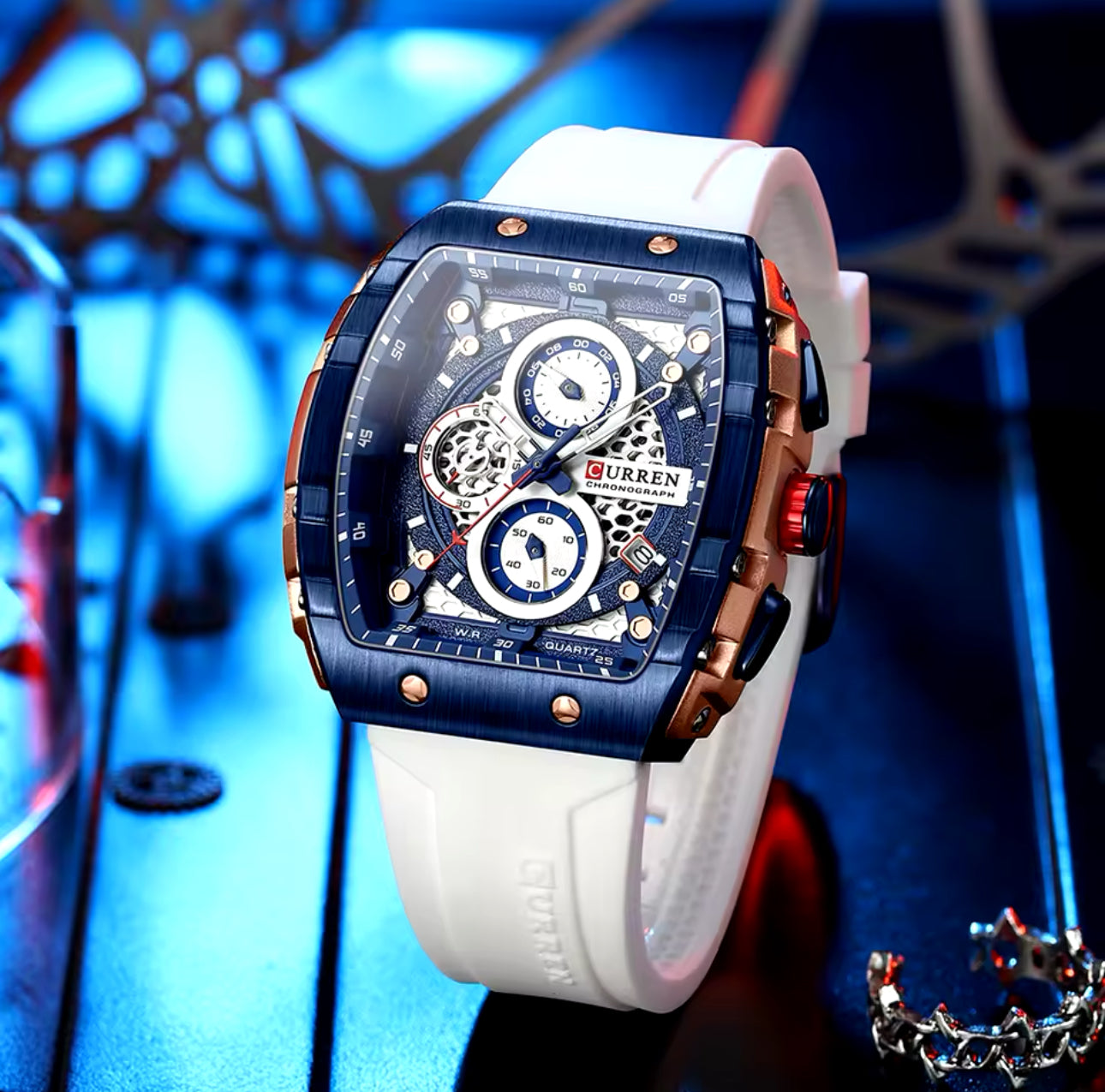 • Design Exclusivo: Caixa retangular Esportiva com Detalhes Sofisticados e Acabamento Impecável.
